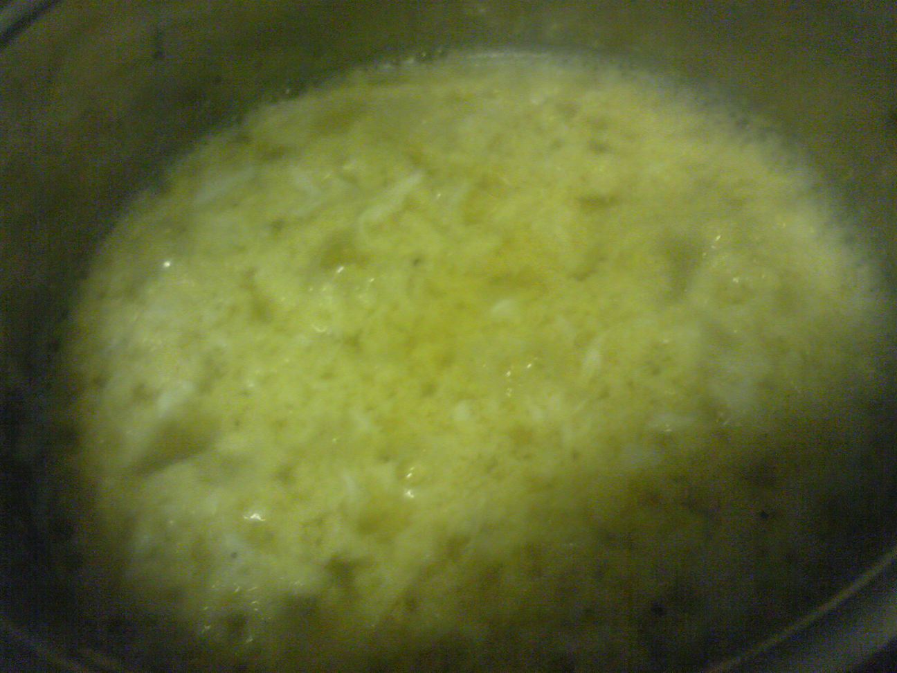 普通はチキンスープを使うらしいんだけど、ないので本出汁で!