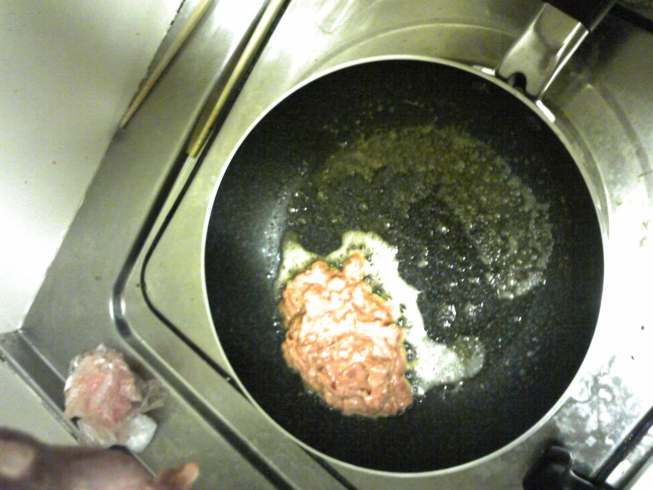 卵とミンチ肉が分裂・・・パン粉は行方不明