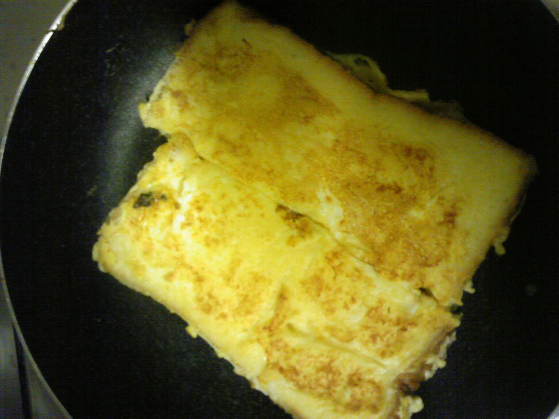 なかなか焼けないので(フライパンが熱くなる前に投下したためw)